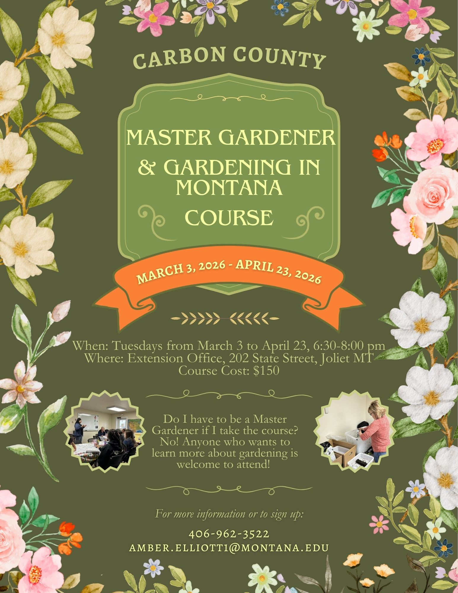 Join Carbon County and MSU Extension to learn more about gardening in our unique environment and the skills and knowledge needed to be successful here. One recent graduate said, “The master gardener course taught me way more than I originally went in for. Every lesson was engaging and well planned and it truly was the highlight of my week.”